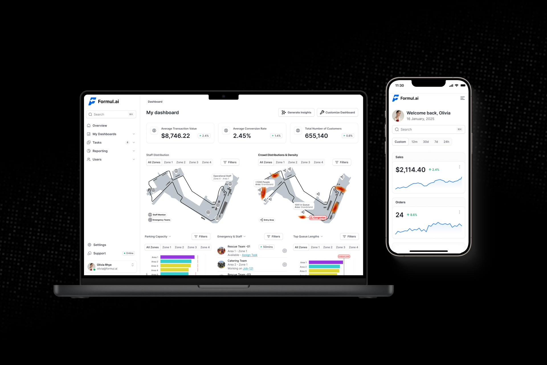 Fueled by the fast-paced world of Formula 1 racing, Formul.ai tackles the complexities of stadium management. We address challenges like handling massive crowds, coordinating real-time events, and optimizing operations for stadiums, concert halls, esports arenas, and beyond.