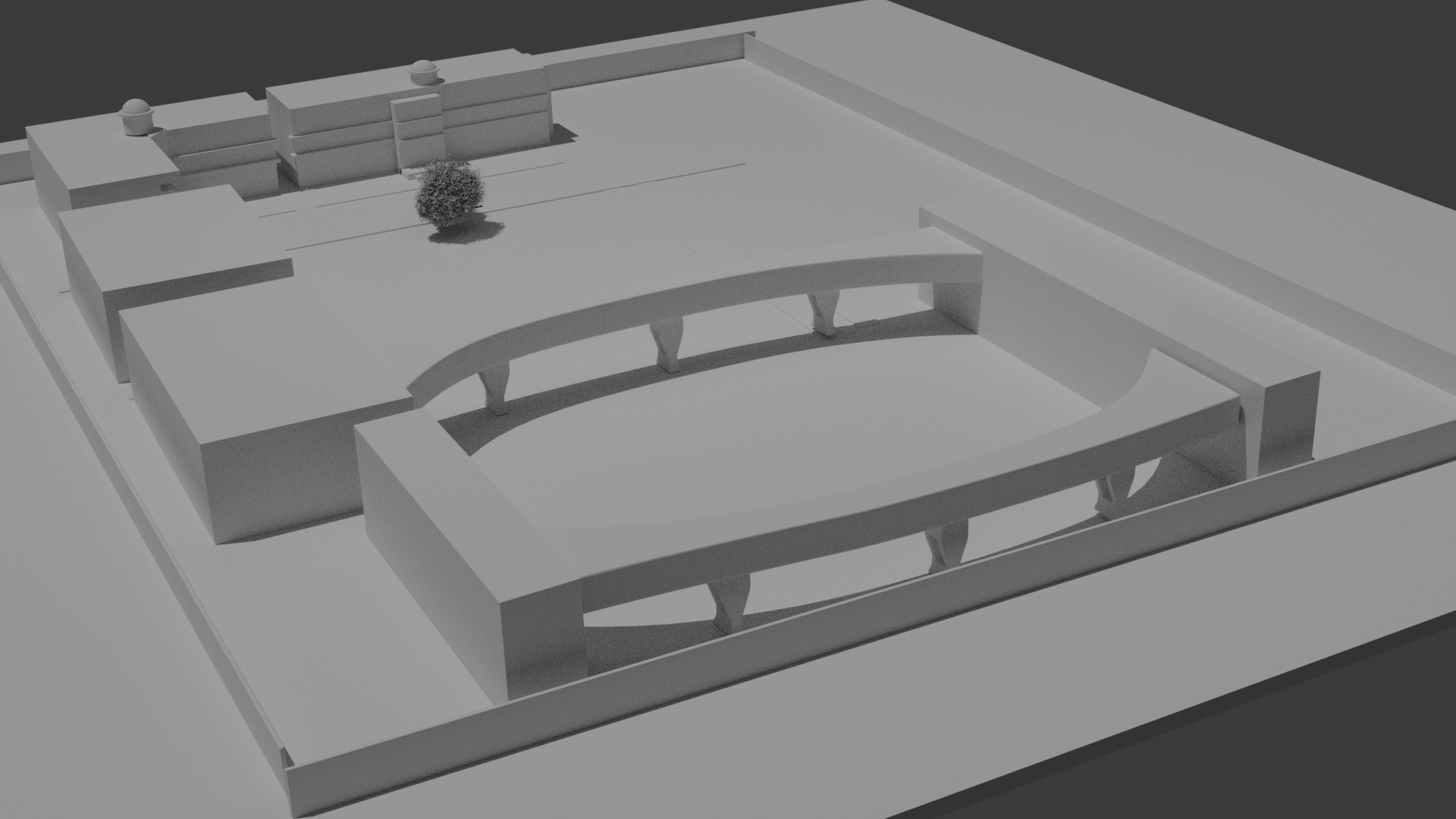 Creating a connection with the new block and the older blocks by a sky bridge. Making Sure the cricket ground is preserved. Using Blender: